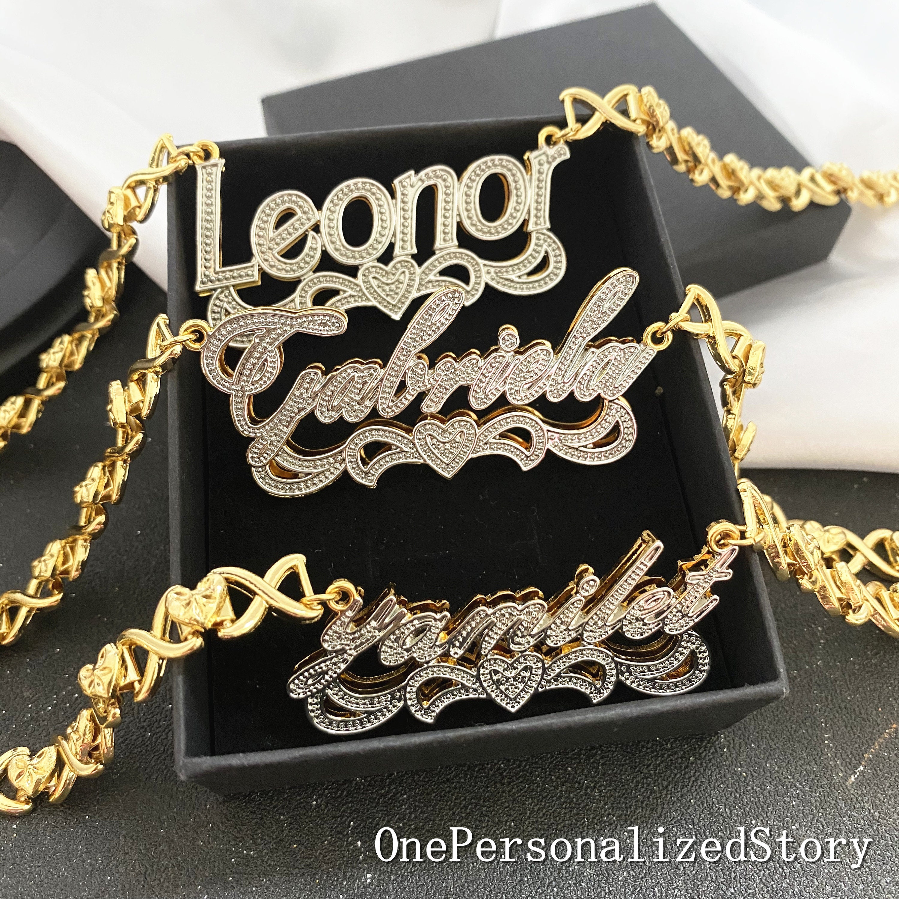 Custom Name Plate Necklace Name Necklace With Xoxo Link Etsy
